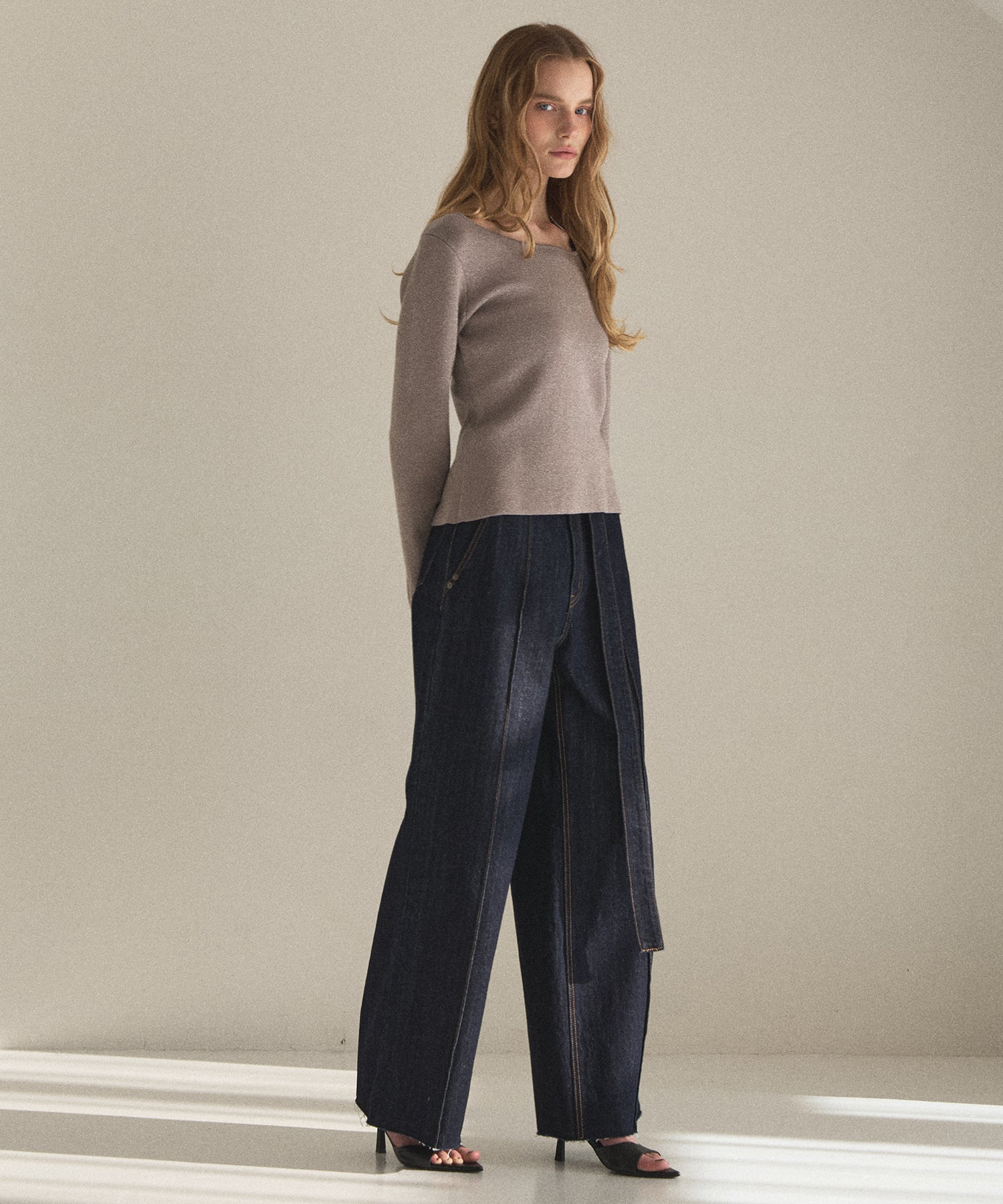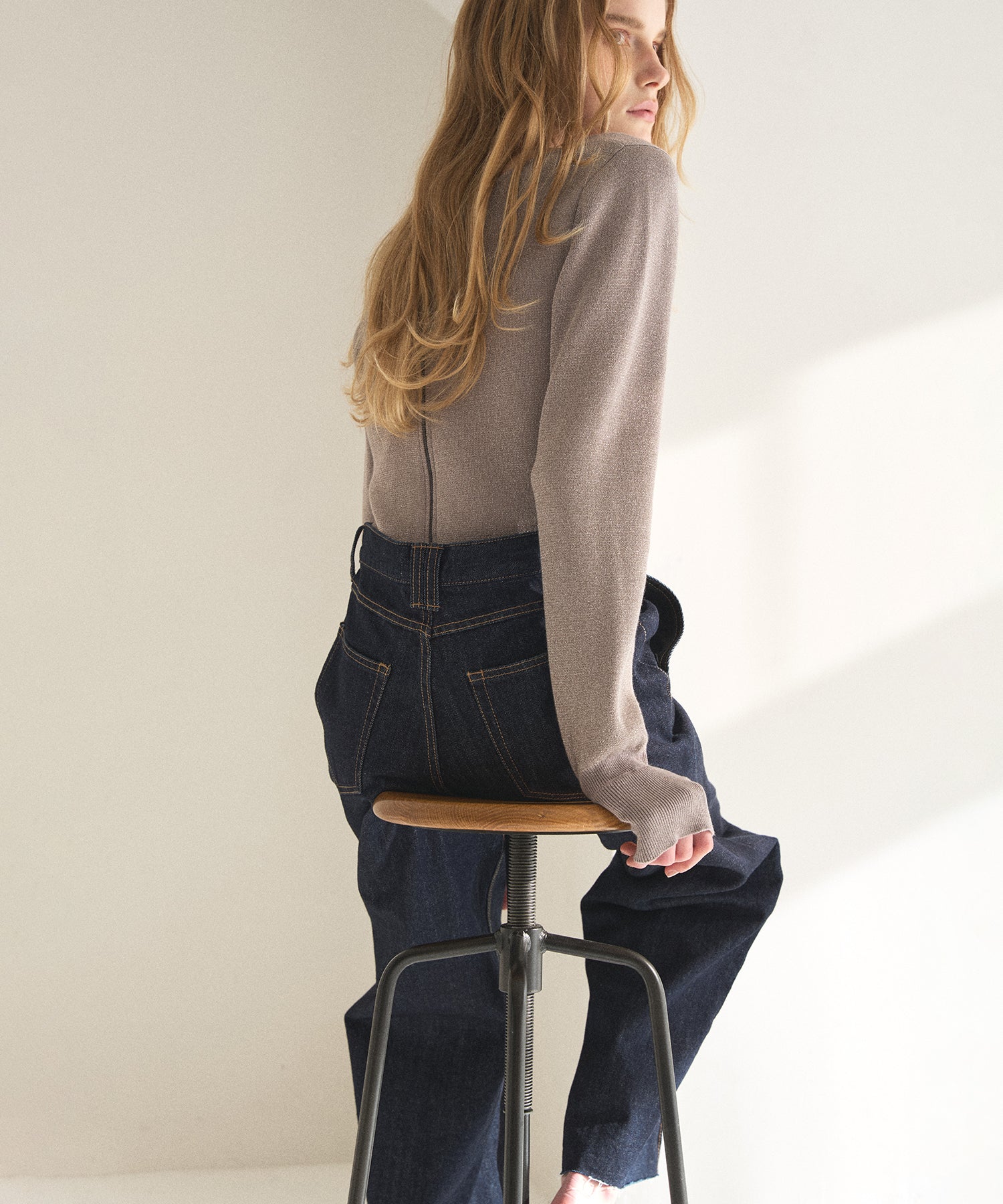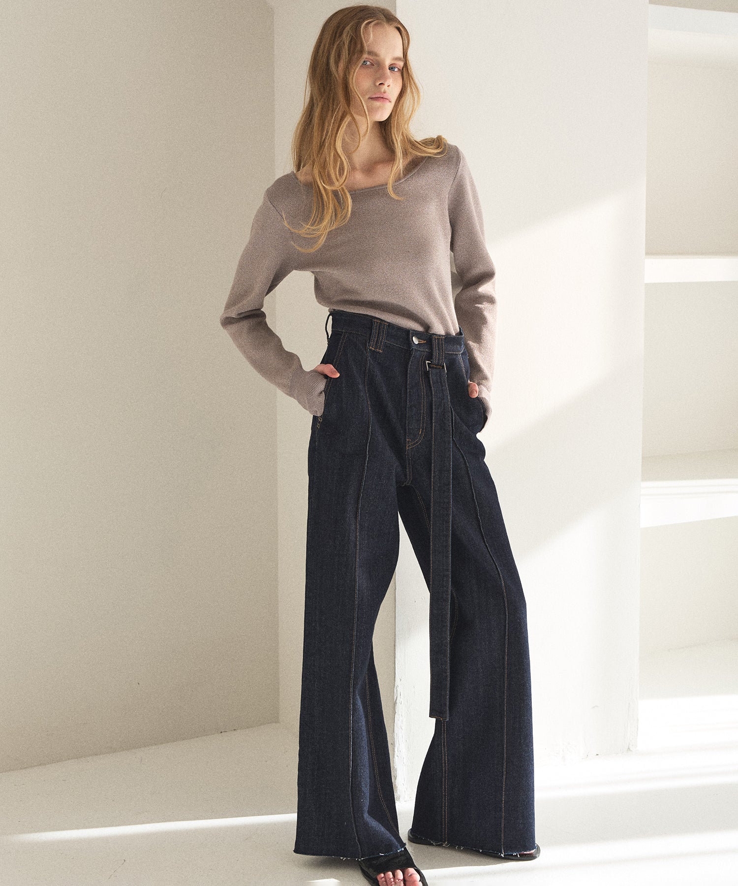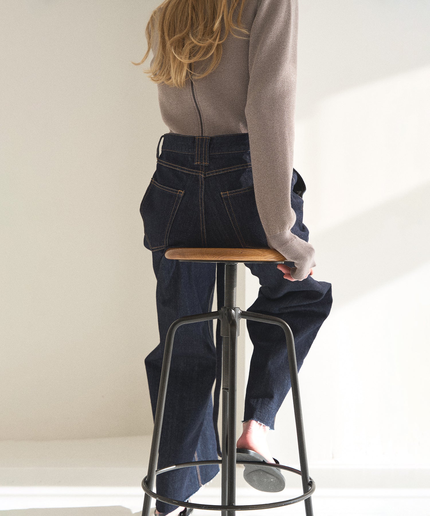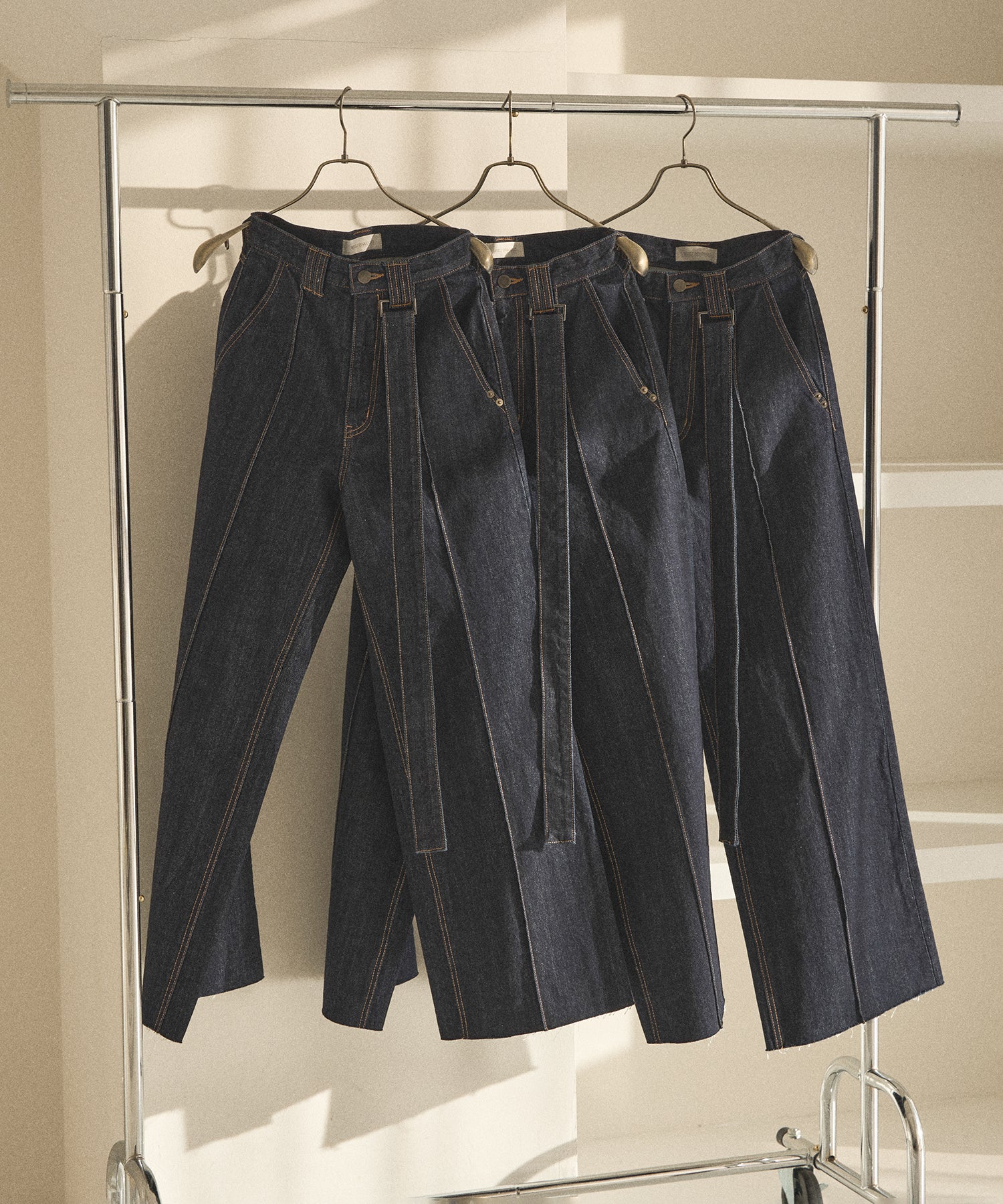 裾はカットオフ仕末のため、お好みのスタイリングやシューズに合わせて自由にセルフカット可能。