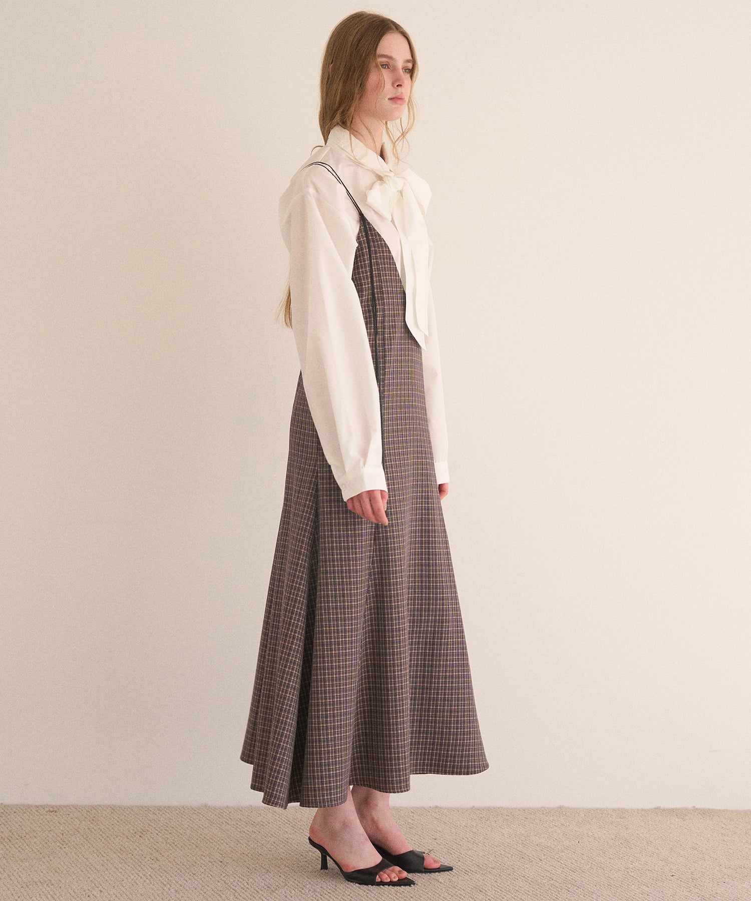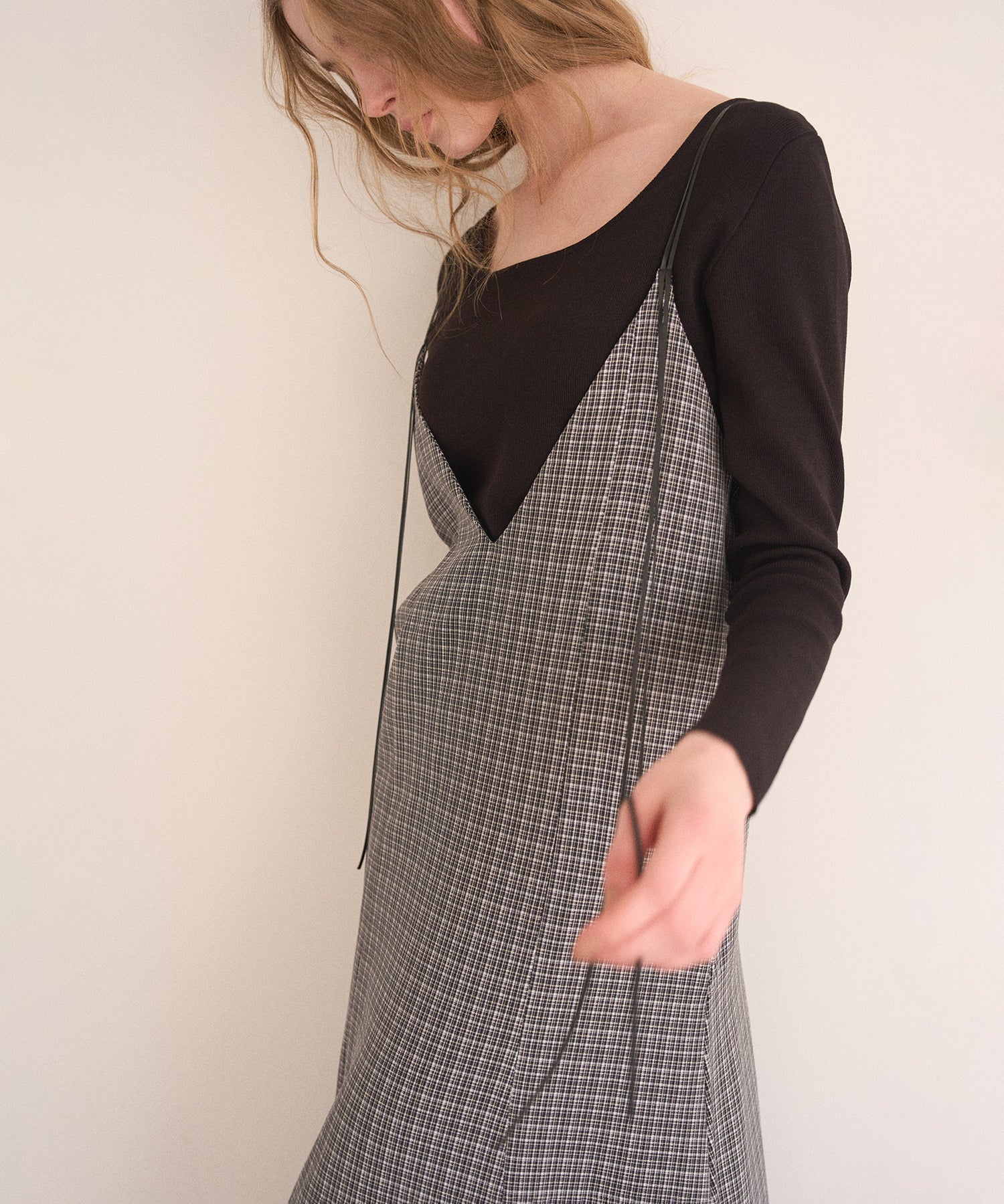 さりげなく揺れ動く華奢なナローストラップもポイントです。