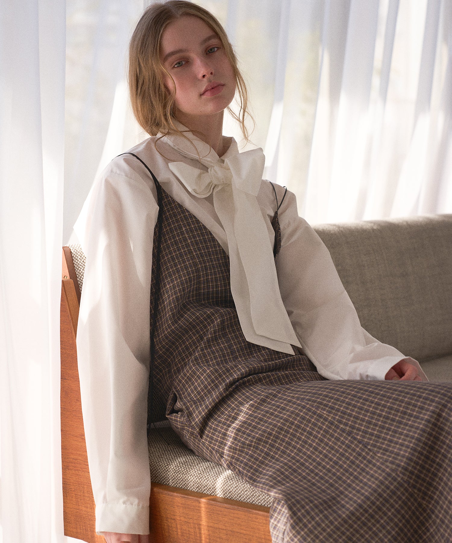涼やかで上品な着映えが目をひくフレンチプレッピーなチェックドレス。
