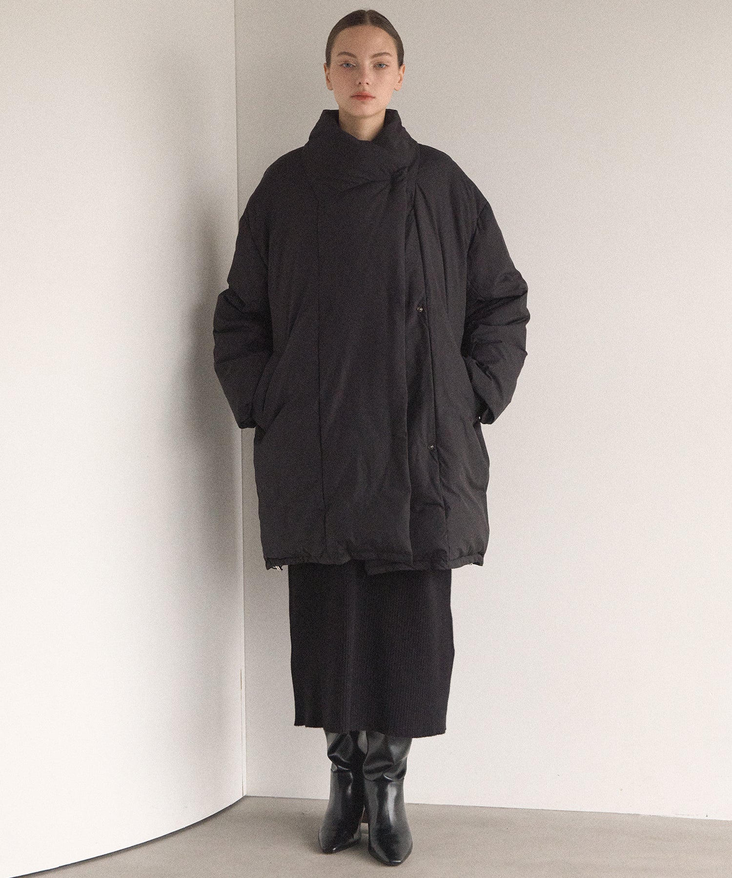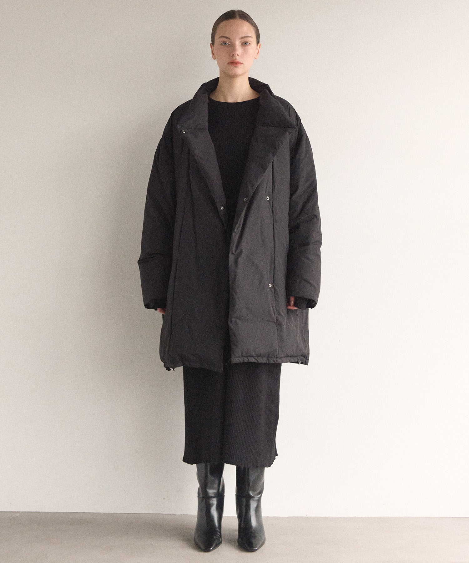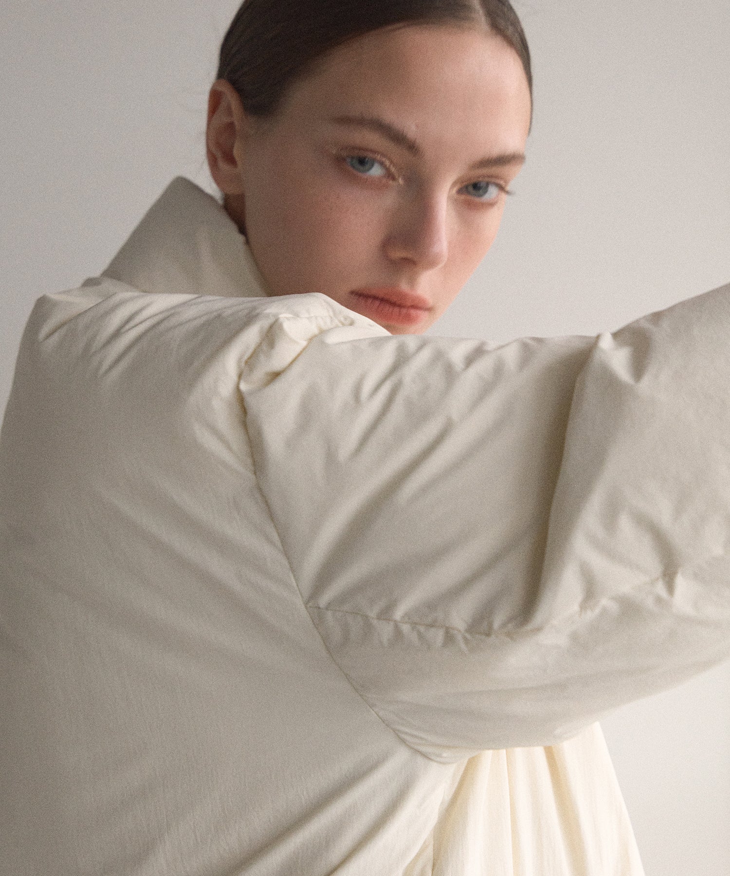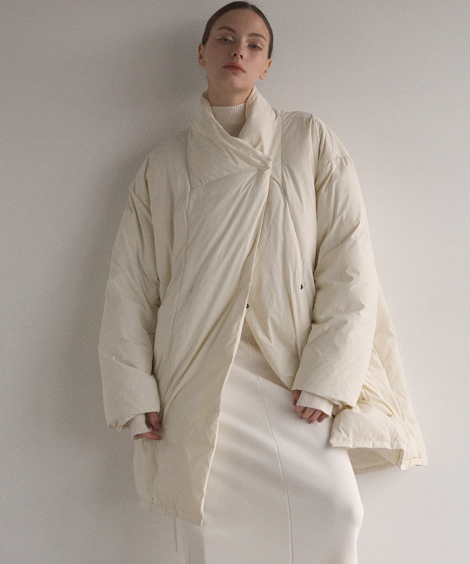 お好みで裾に付いたドロストを絞ってバルーンシルエットにアレンジしても着用いただける、冬のスタイリングに映えるアウターとなっております。