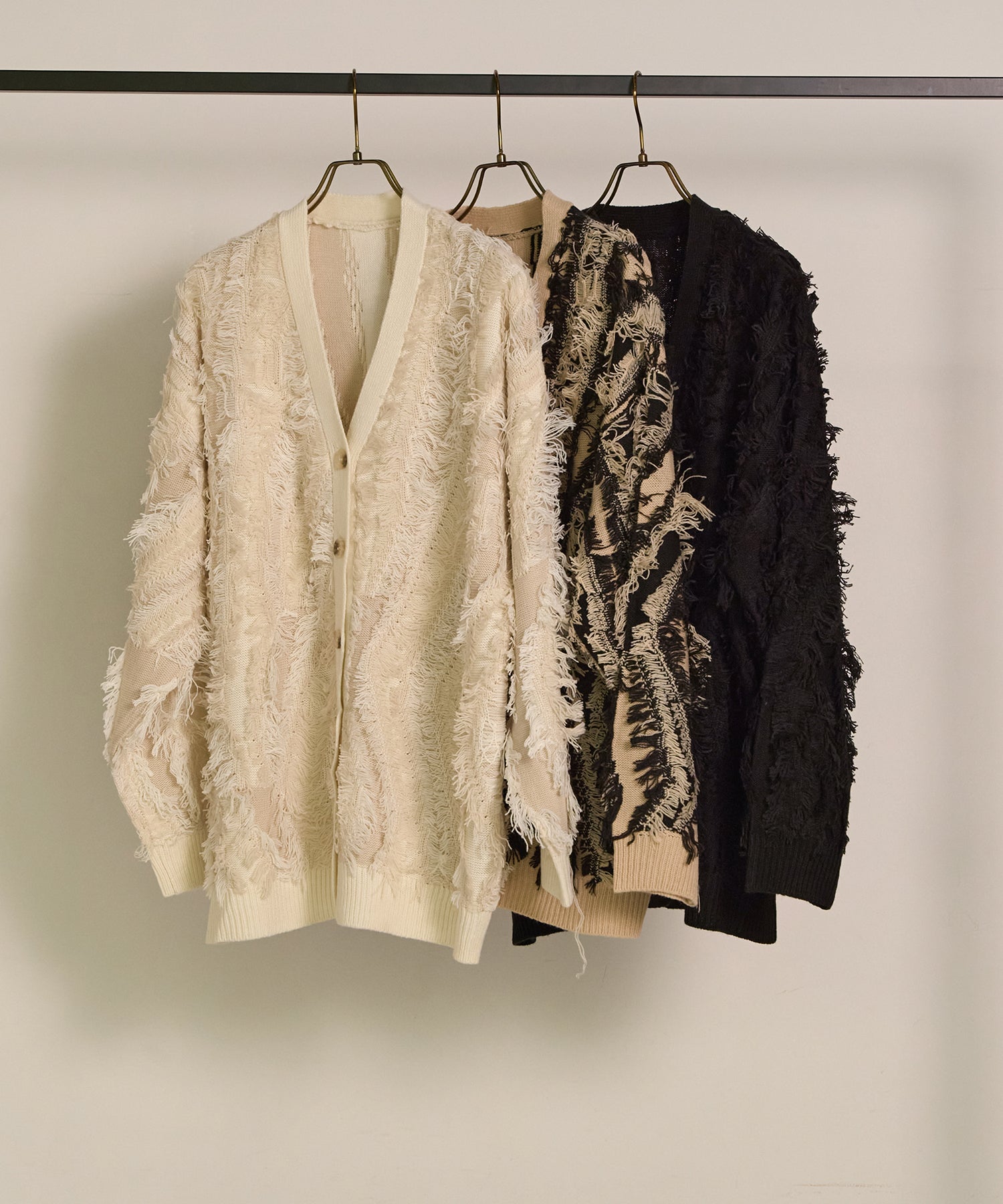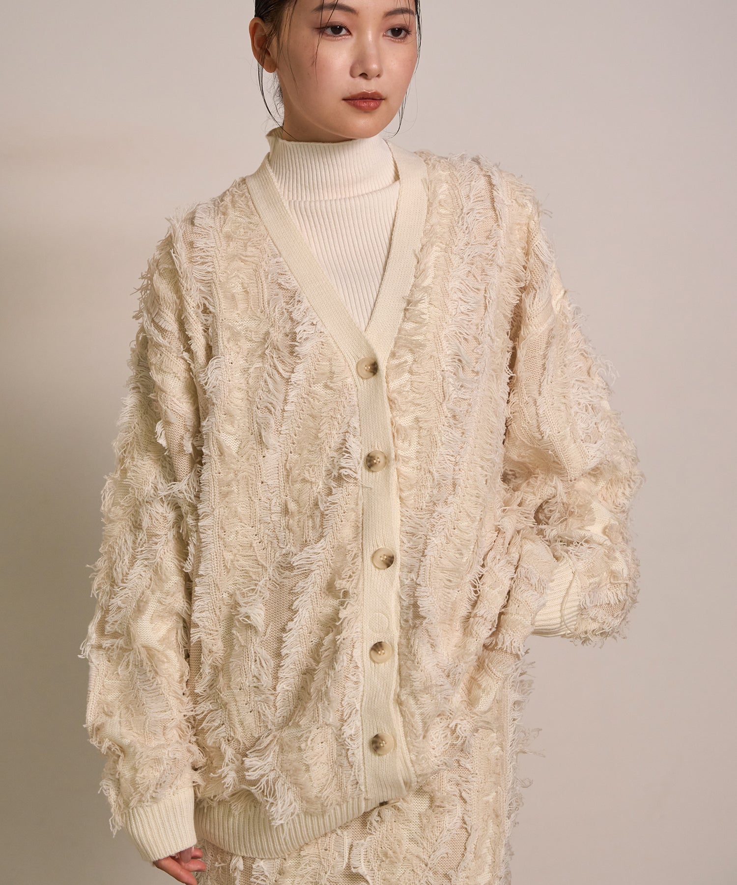 表情豊かなフリンジと立体的な編地が魅力のニットプルオーバー。