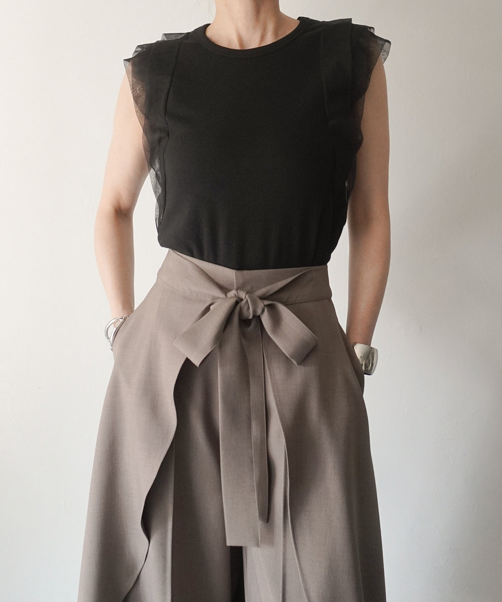 ペプラム部分はデザイン性だけでなく、お腹や腰まわりをカバーしてくれる効果も◎。