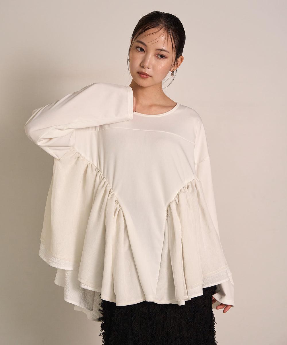 (eliuu)Ruffle Cuffs Soft Knit Top