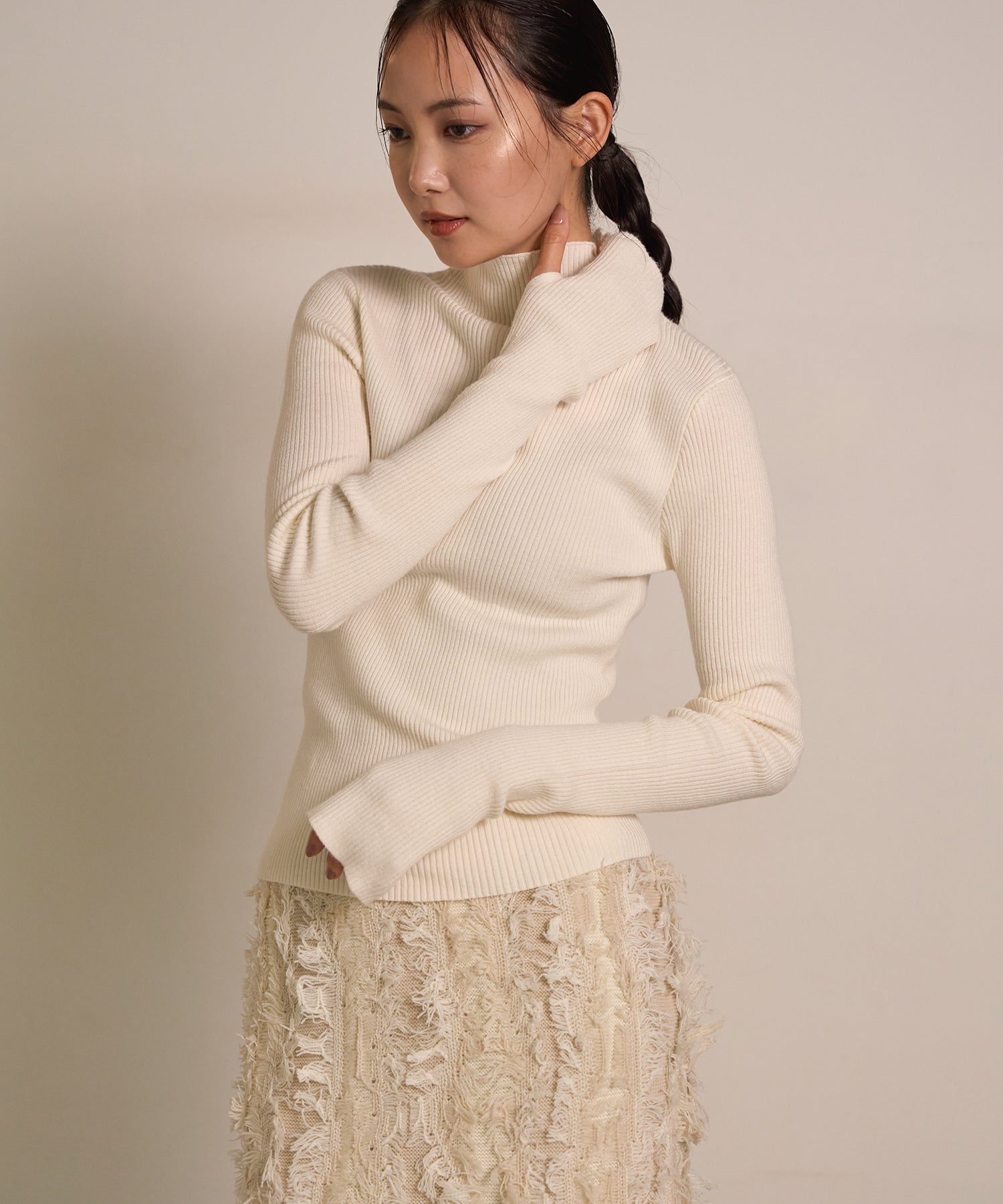 滑らかなタッチが心地よい、シーズンレスに着回せるハイネックトップス。