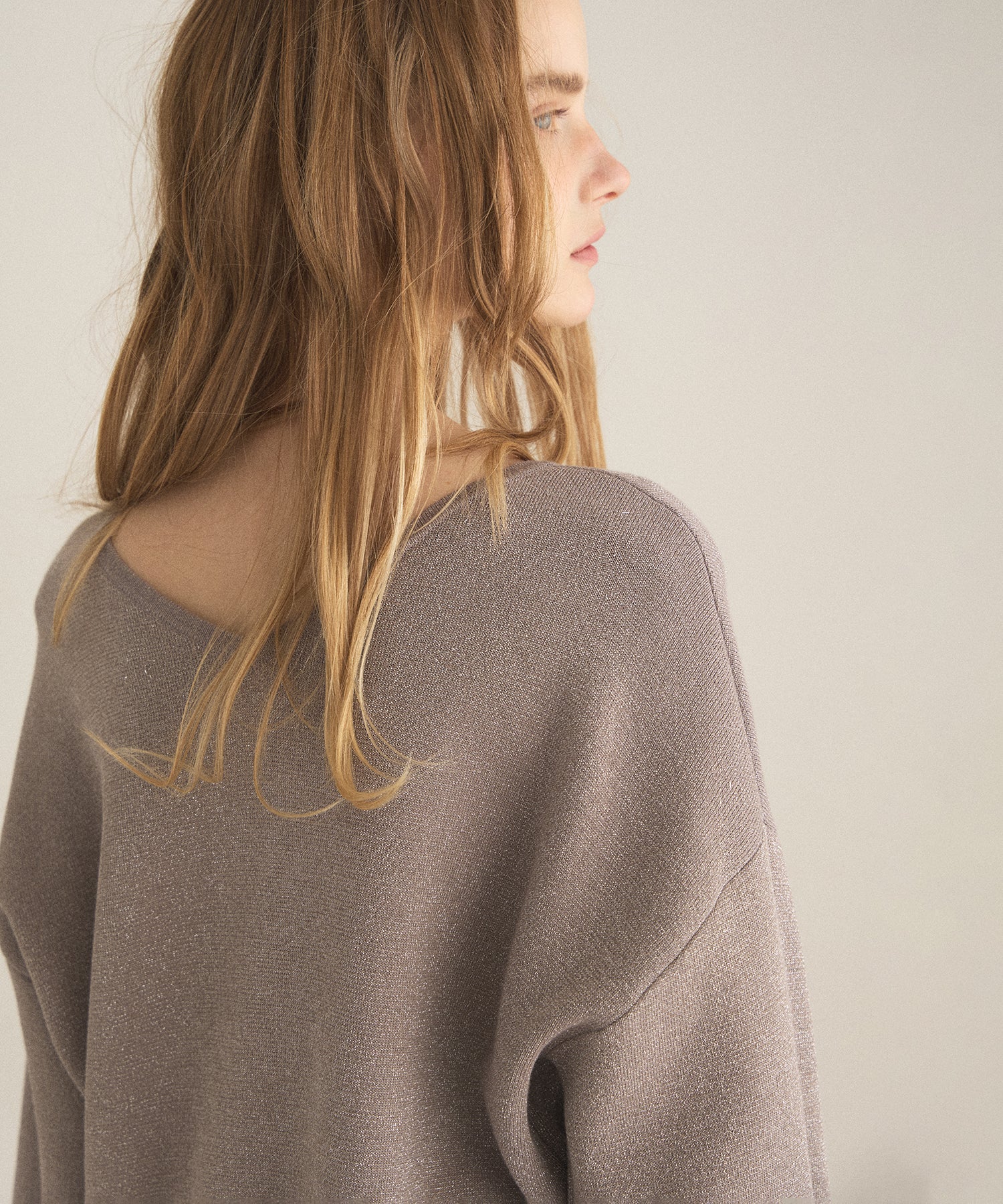 表面のみにラメ糸が出るように編み立てており、内側はラメによるチクチク感がなく肌触りはとても快適です。