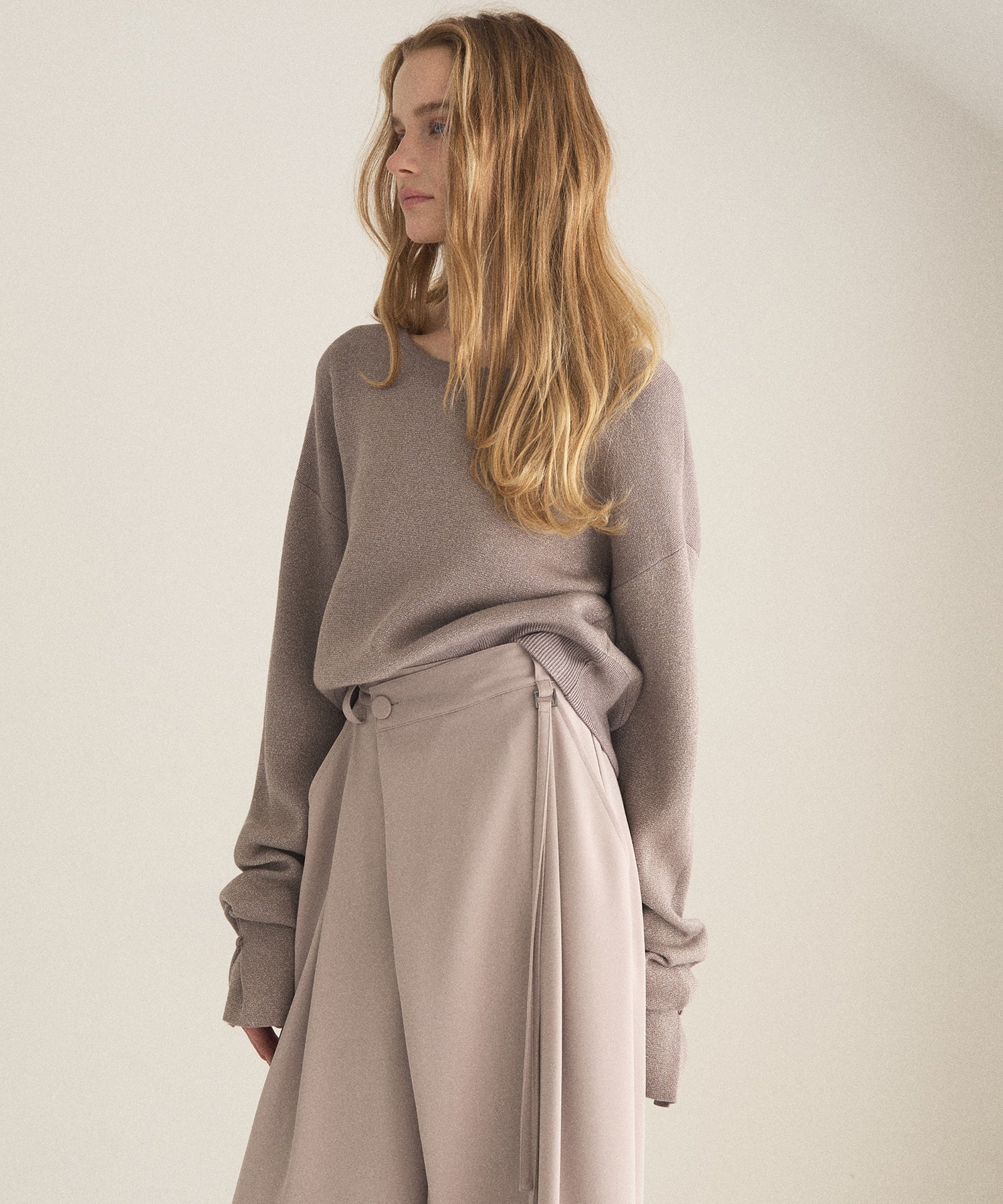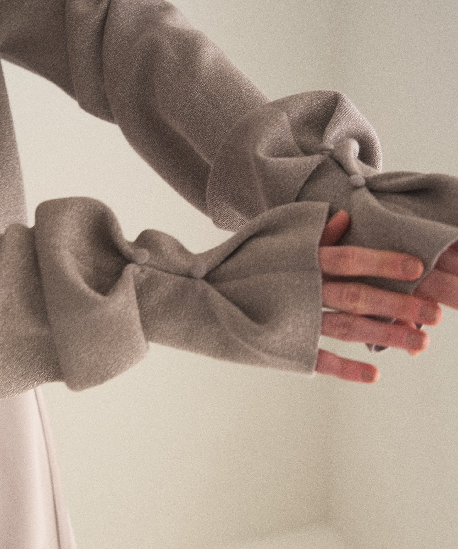 袖先をたたんでボタンで留めたディティールポイントが、手先までも女性らしさの上がるMIELIらしいアイテムに仕上がっております。