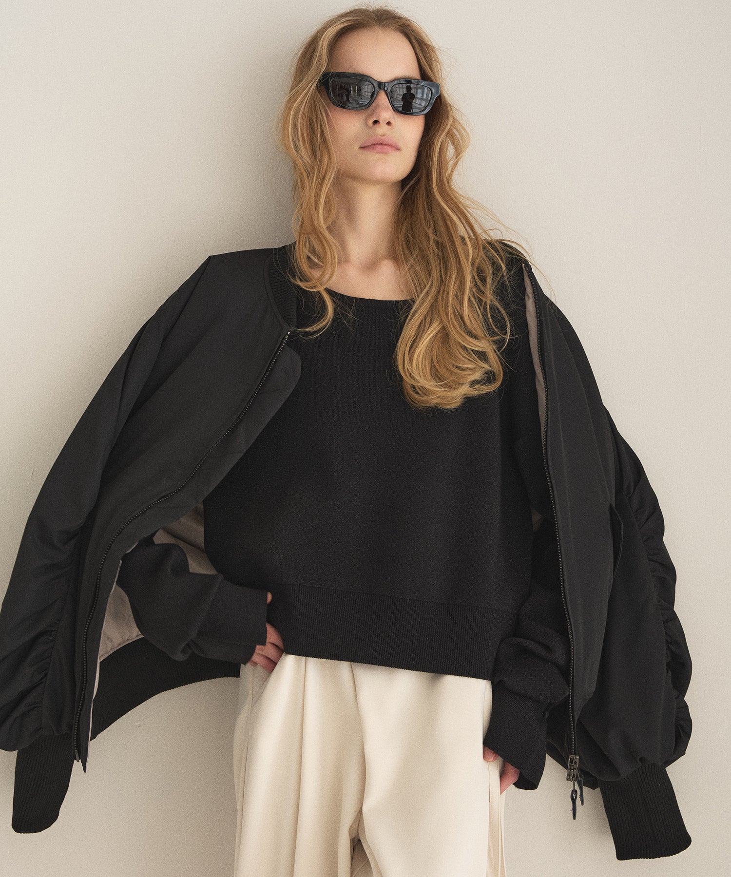 袖はあえて長めにくしゅくしゅと溜まりができ、萌え袖になるよう設定。