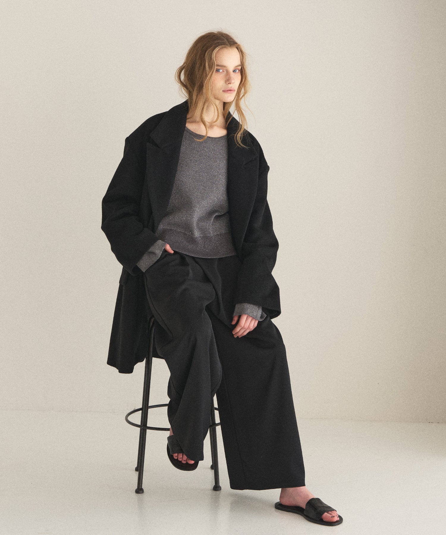スウェットのプルオーバーで使用するカジュアルでバサっと着れるトップスをイメージに、シンプルでやりすぎないバランスがデイリー使いしやすく、前後2wayでお好みで着用いただけます。